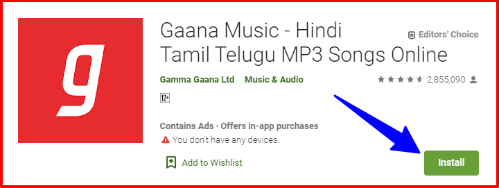 STEP 1 . सबसे पहले आपको अपने मोबाइल के Play Store में जाकर Gaana App सर्च करके आपको अपने मोबाइल में इसे इनस्टॉल करना हैं या आप हमारे द्वारा नीचे दिए गए लिंक से भी गाना अप्प को डाउनलोड कर सकते हैं।