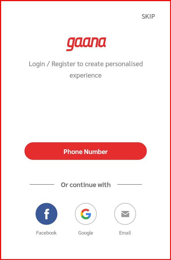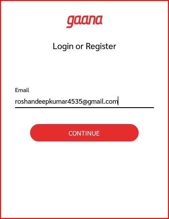 STEP 2 . मोबाइल में एप्प डाउनलोड करने के बाद आपको पहले अपने Email ID या Mobile Number द्वारा Gaana App पर अपना अकाउंट बनाना पड़ेगा।
